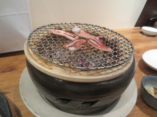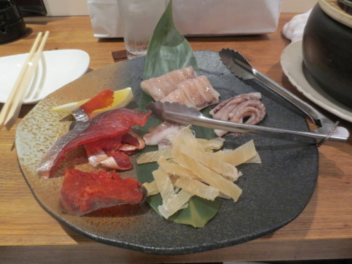 Cook your own dinner... some raw octopus, raw eel, and dried fish.